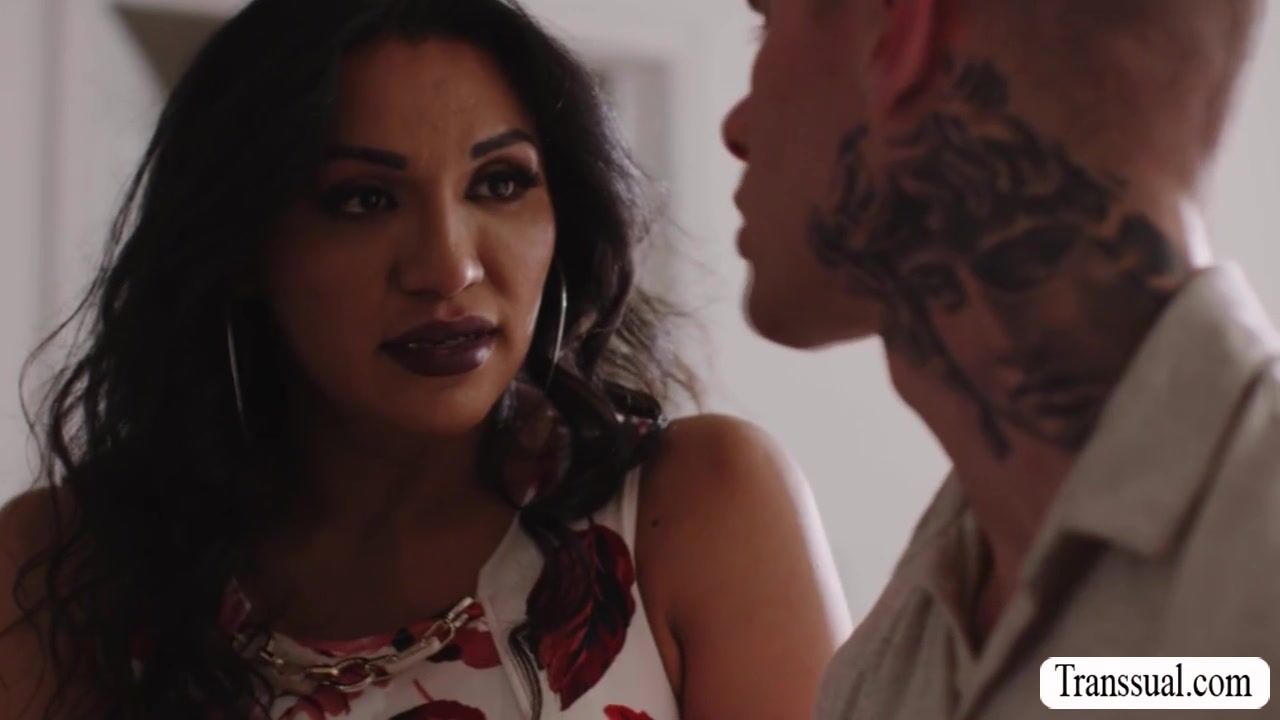Latina TS stepmom comforts broken stepson by kissing him passionately.After that,she lets him suck her tranny cock so deep in his throat.Next is,she licks his ass first and she then bareback fucks it so deep and hard.