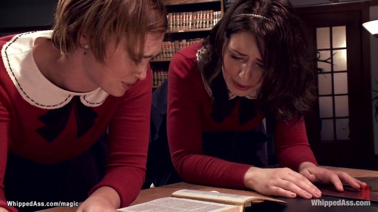 Huge boobs brunette MILF nun Felony spanks submissive coeds Jodi Taylor and Sarah Shevon then on mattress anal fucks them with strap on cock