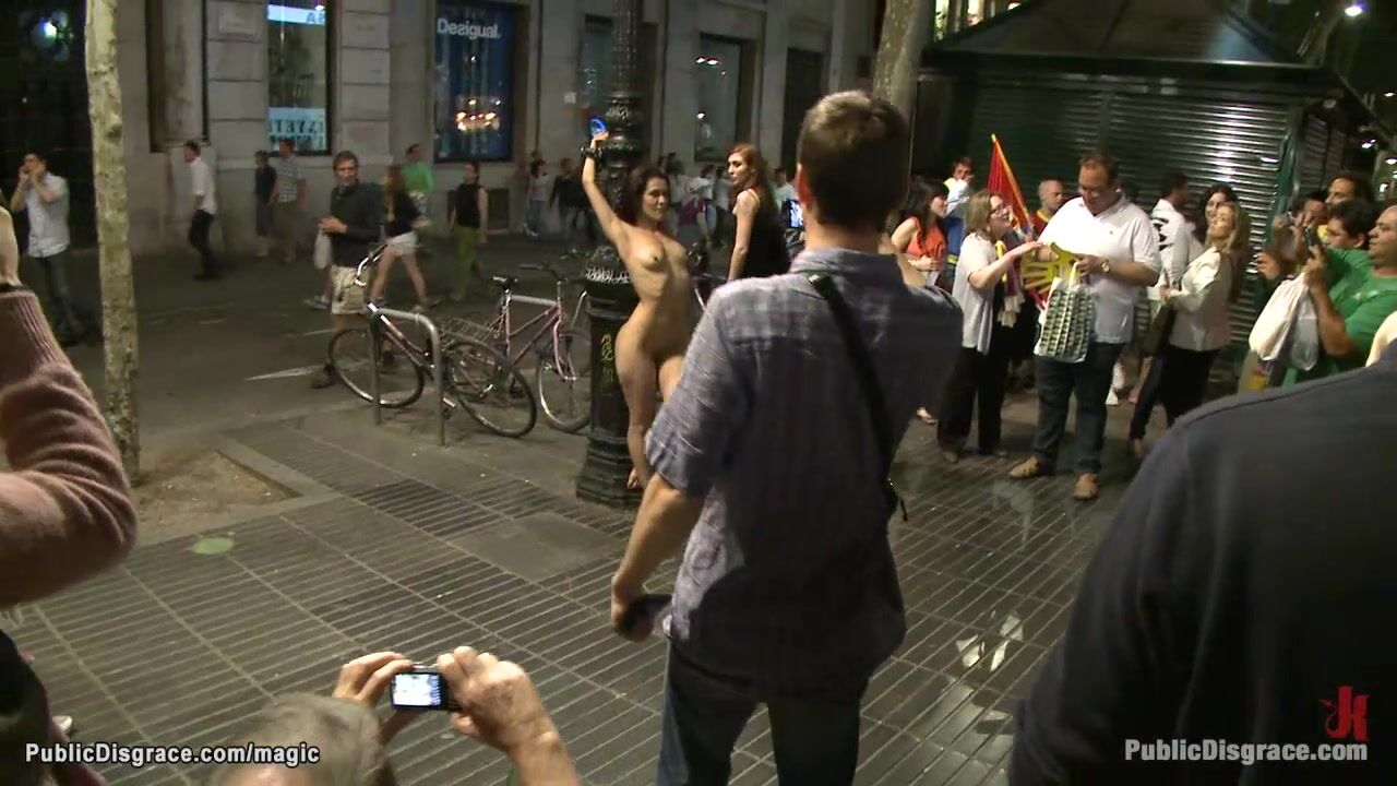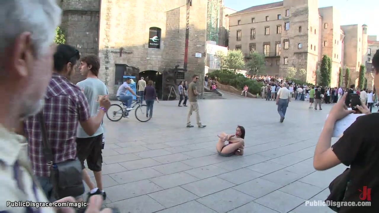 Spanish hottie Samia Duarte is bound on the ground and made flashing panties in public crowded streets then big cock fucked in van by James Deen