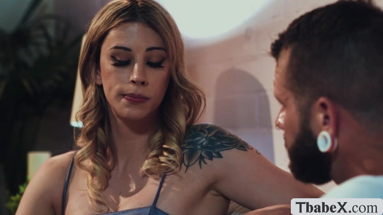 Big tits transexual Casey Kisses catch up with old hunk friend Johnny Hill and begin kissing while caressing big cock. The busty ladyboy grabs his big cock to deepthroat blowjob before her big ass takes it for a hardcore anal bareback doggystyle and missionary.