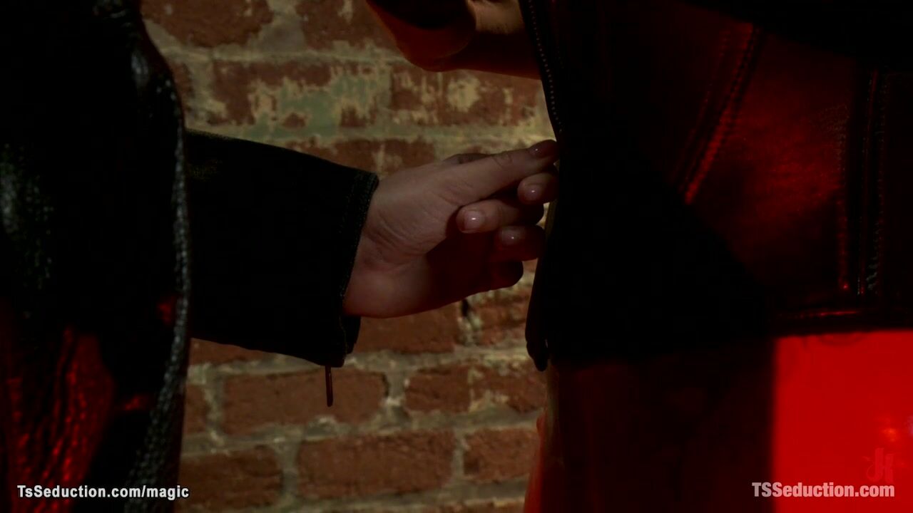 In The Red Light District big boobs blonde dom shemale in latex Danni Daniels dominates and fucks straight couple Chloe Camilla and Patrick Rouge