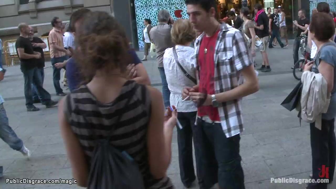 Super hot Euro babe Yoha Galvez with huge boobs naked walked through public crowded streets by dom Princess Donna Dolore then fucked by James Deen and his big cock