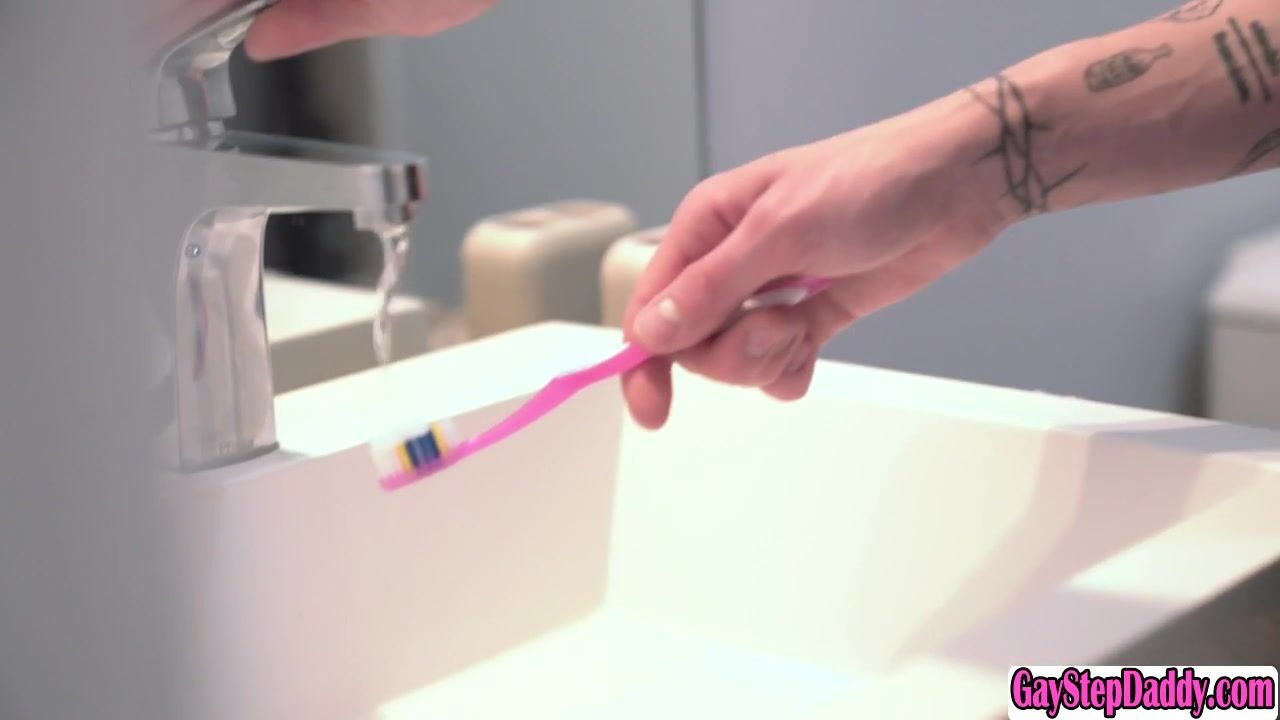 Ripped gay stepdad gets his big cock sucked and fucked