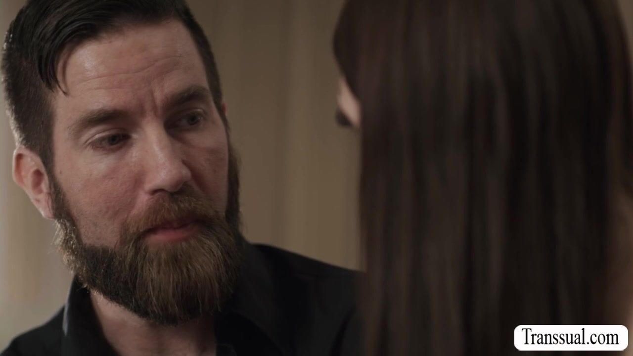 Stepdad goes to the room of his shemale stepdaughter and he then comforts her by kissing her passionately.After that,he licks her ass first to makes it wet and in return,his TS stepdaughter throats his dick and lets him bareback fuck her ass.