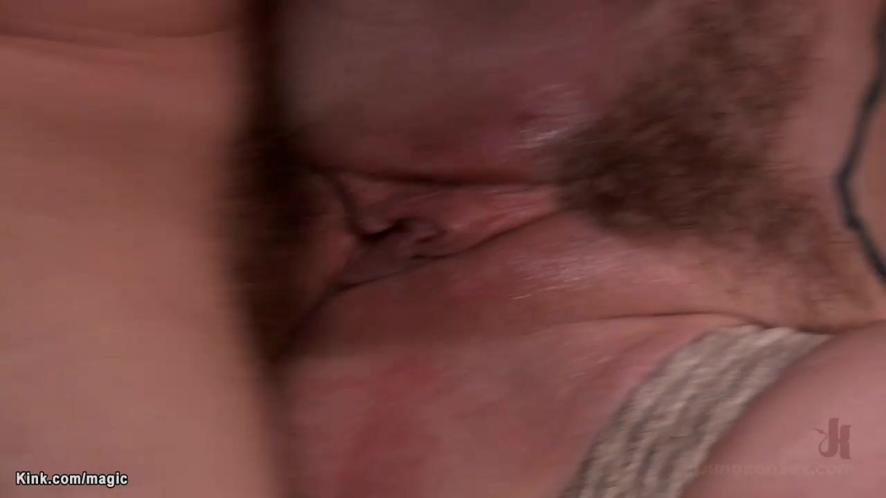 Hairy pussy curly red head slave Bailey Paige gets rough fucked then suspended in horizontal position and deep throat and hairy pussy big cock fucked by master Tommy Pistol