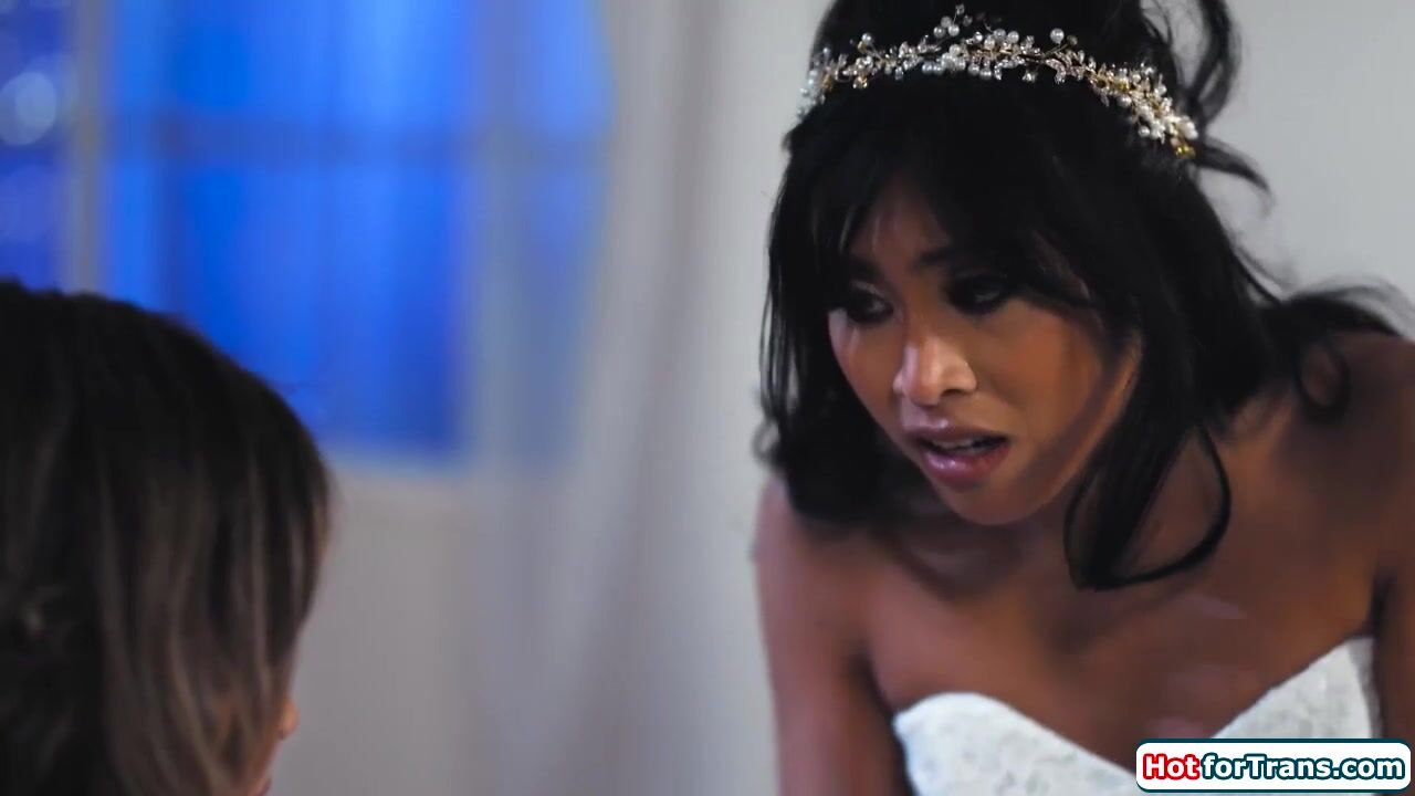 Busty shemale Korra Del Rio hears her bff wants to cancel the wedding and gets a kiss.The big tits tgirl gets her tranny dick jerked off and is sucked off by the asian bride.The trans licks pussy by being facesitted.The brunette ts fucks her bestie