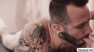 Injured dude gets his ass licked and analed Tgirl masseuse