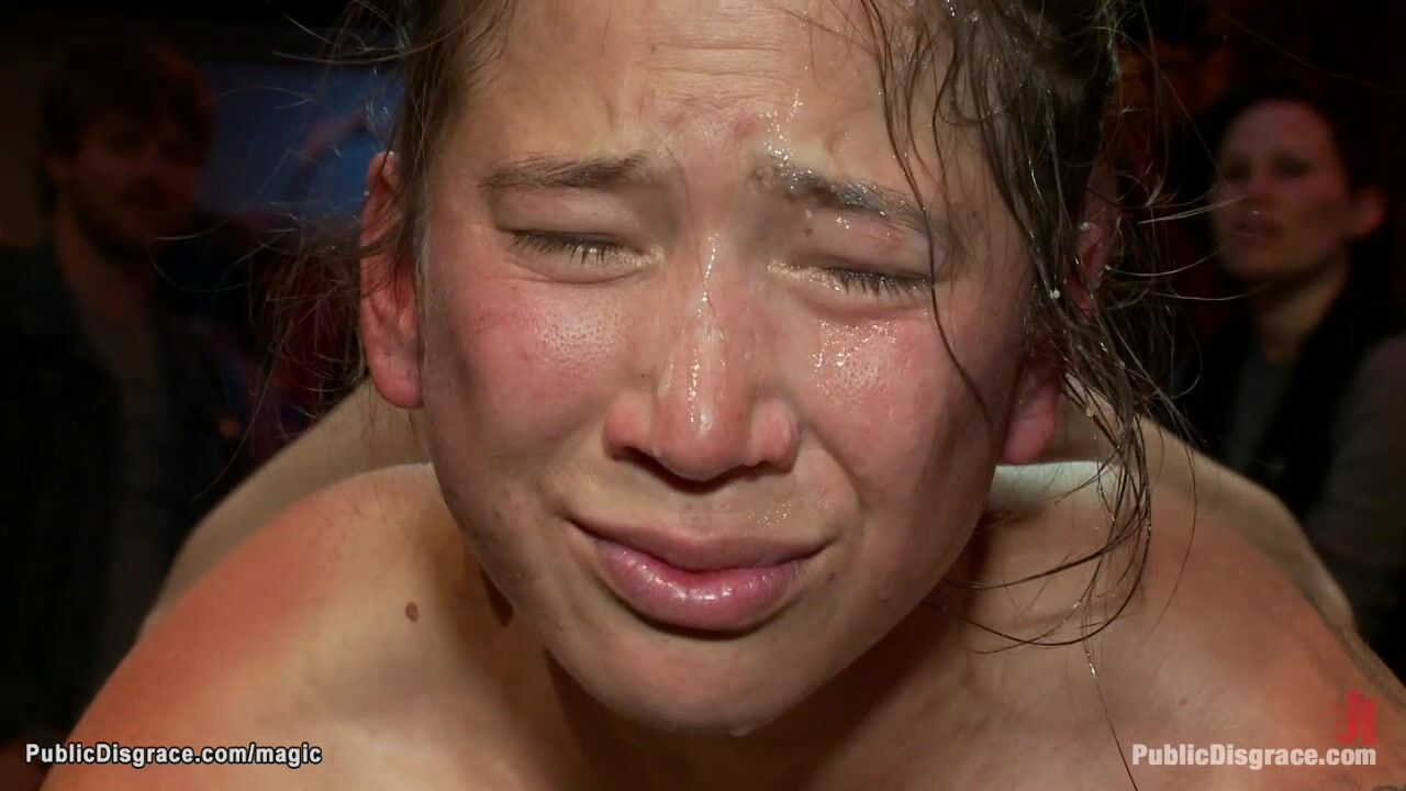 Bound brunette gets facial in public