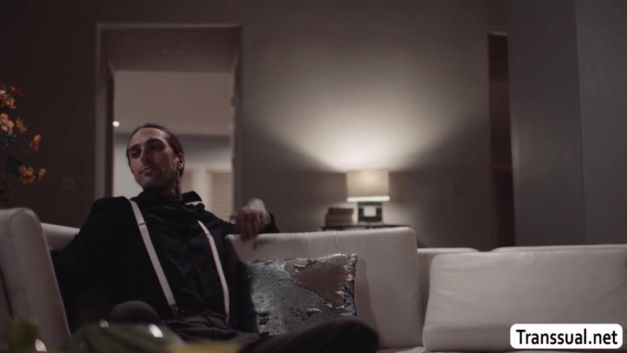 Straight dude is on the couch taking selfies while his TS mistress is in the back watching.After that,they start kissing each other passionately and then she throats his dick.In return,the guy licks her ass first and fucks it so hard.