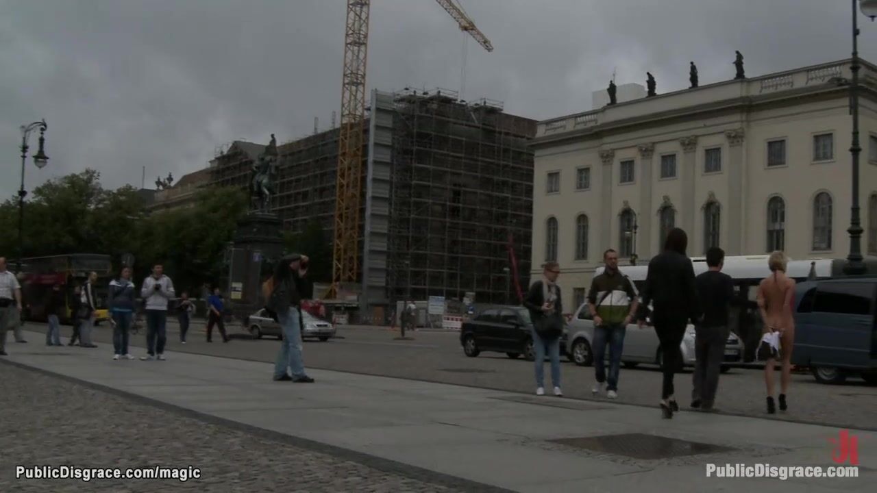 Princess Donna Dolore and Tommy Pistol walk naked Euro blonde babe Diana Pink through public streets then bind and fuck her and cum on her face