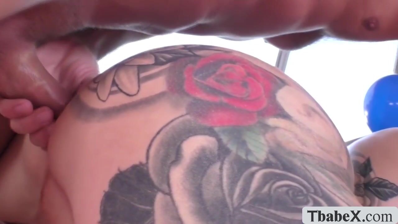 Tattooed TS Luna Love stripteases in stylish white lingerie shaking off her thick ass. The busty transexual teases the camera ,but she soon joins bold stud Lance Hart for a nasty anal bareback. But before that the two share deepthroat blowjob in a 69.