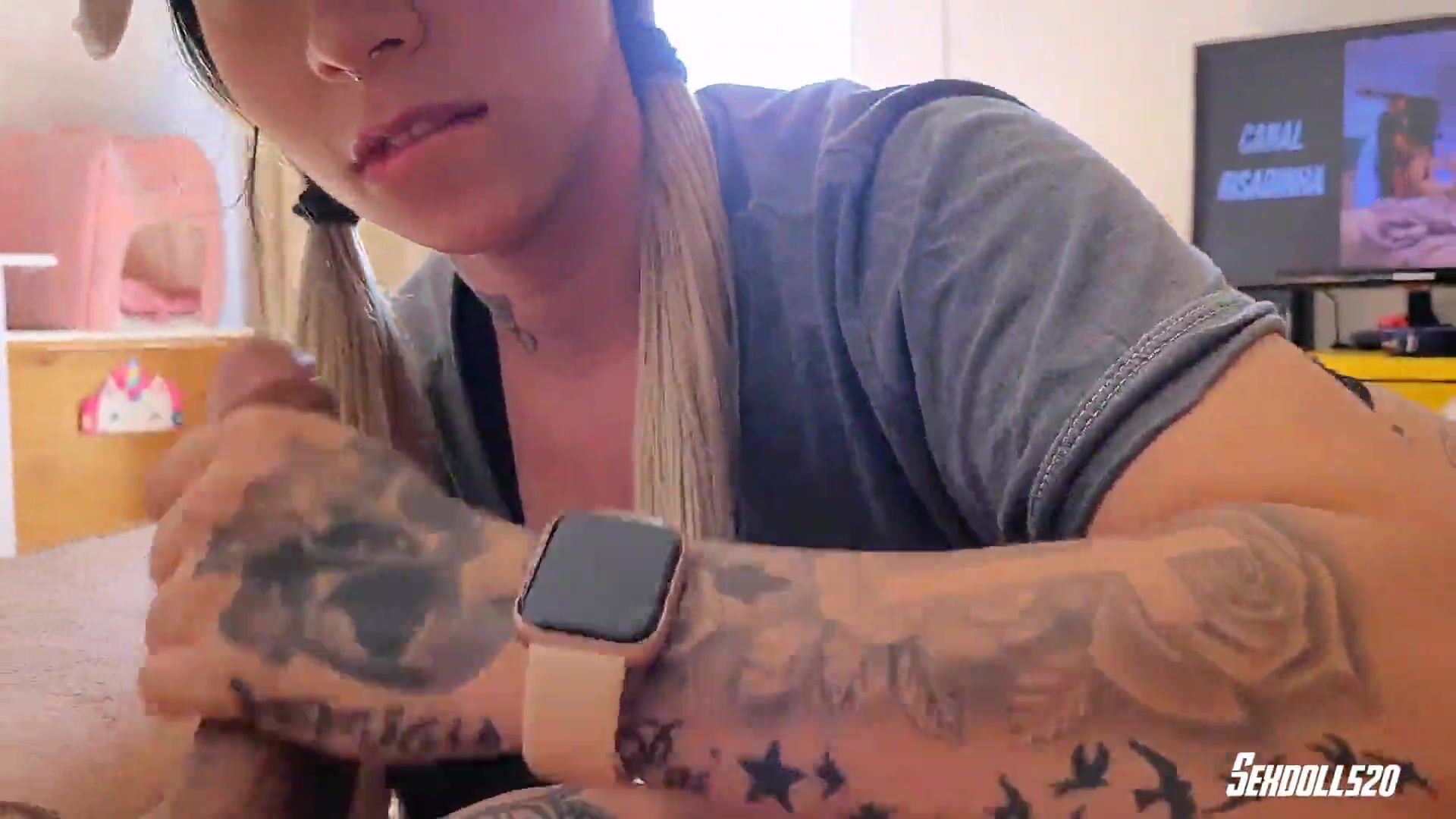 SD 018 - Tattooed brunette with piebald body fucking very tasty