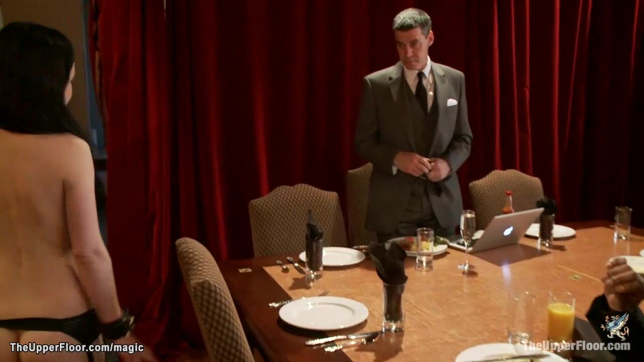 Three hot slaves Bella Rossi and Juliette March and ebony Nikki Darling serving in the Upper Floor and getting fucked by big cocks in front of horny guests