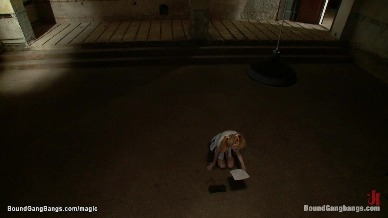 Basketball team and their coach bind hot blonde cheerleader in locker room and with big cocks gang bang and double penetration fuck her in suspension and other positions