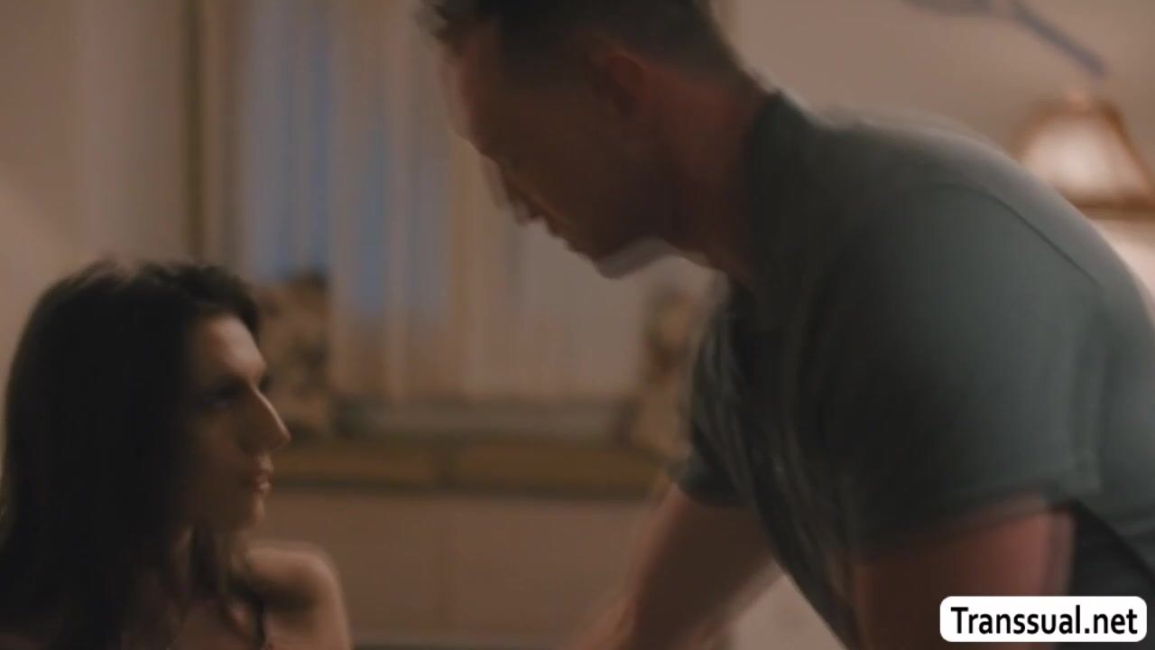 Busty brunette TS and her boyfriend are in the motel.They start kissing each other in their room and then she lets him throat her shecock passionately.In return,she throats his hard big cock too and lets him bareback fuck her wet ass so hard.