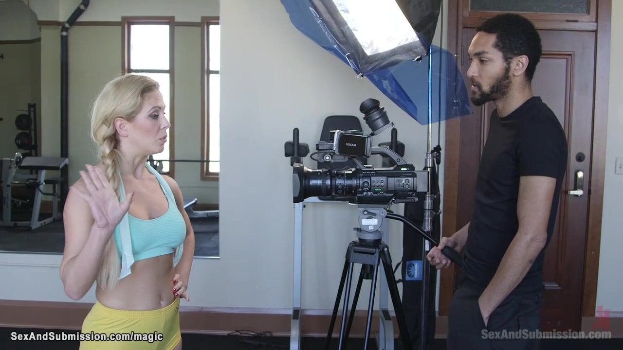 Black camera man Mickey Mod shoots set with big tits blonde MILF yoga instructor Cherie DeVille then brings her in private dungeon where torments her in bondage in various positions