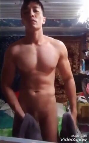 very cute asian stud shows off & JO & wanks his thick cut dick on cam