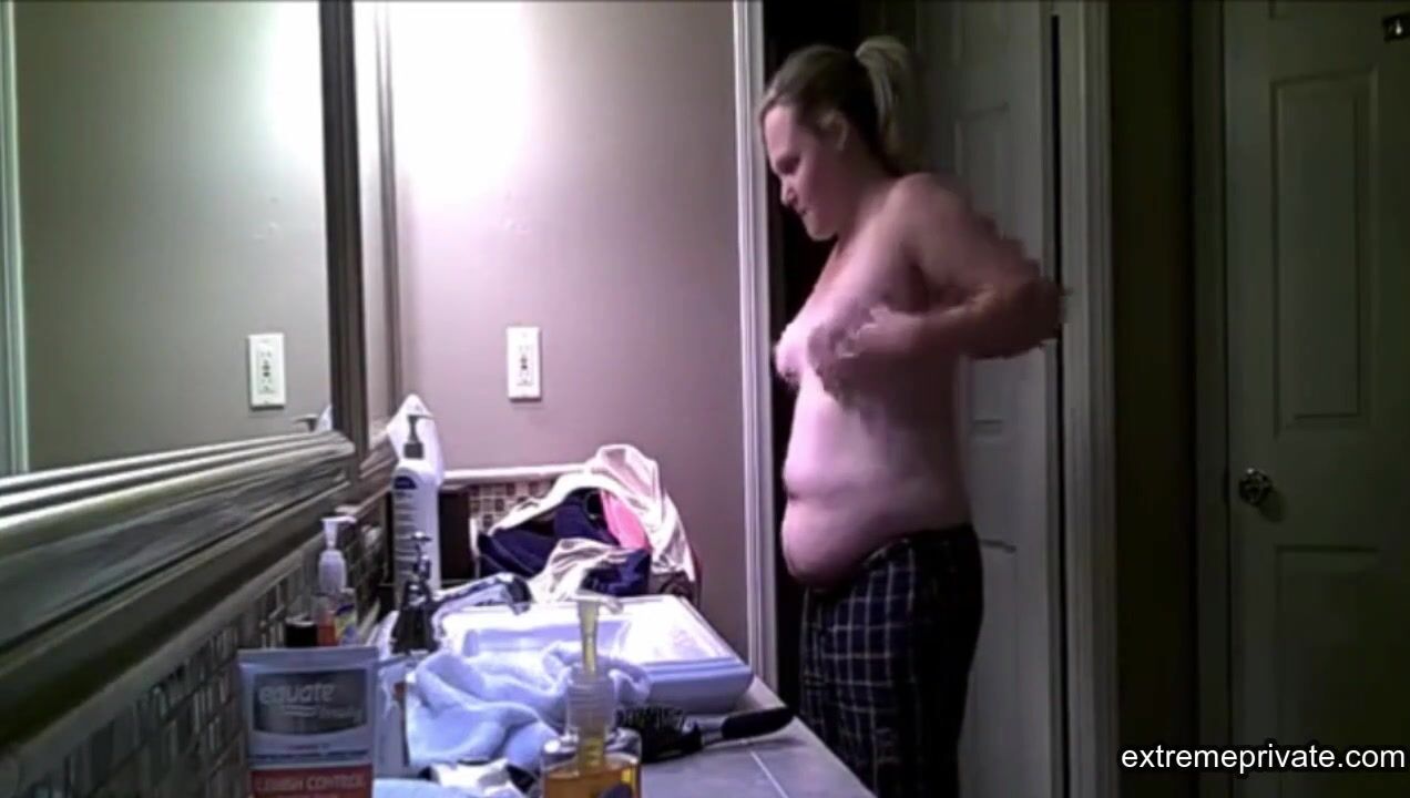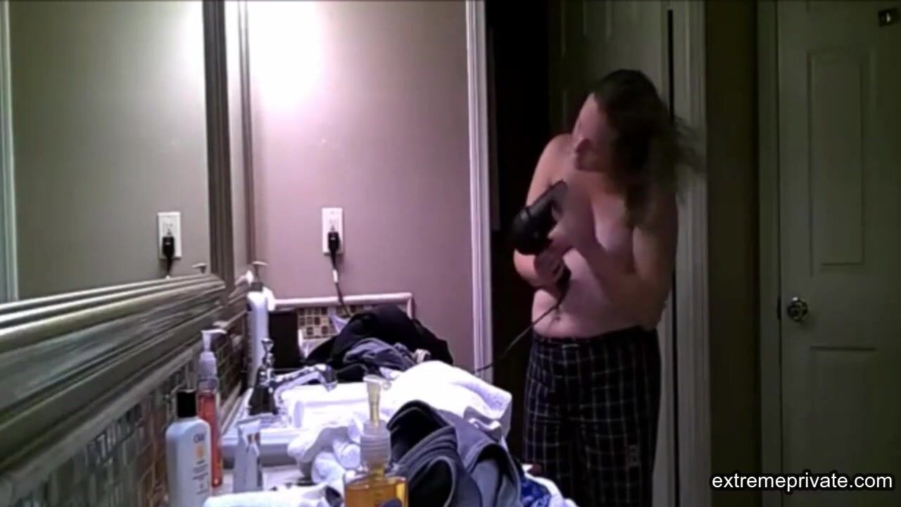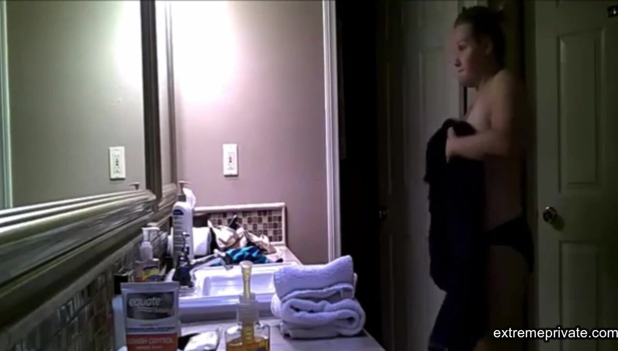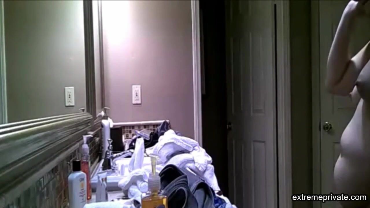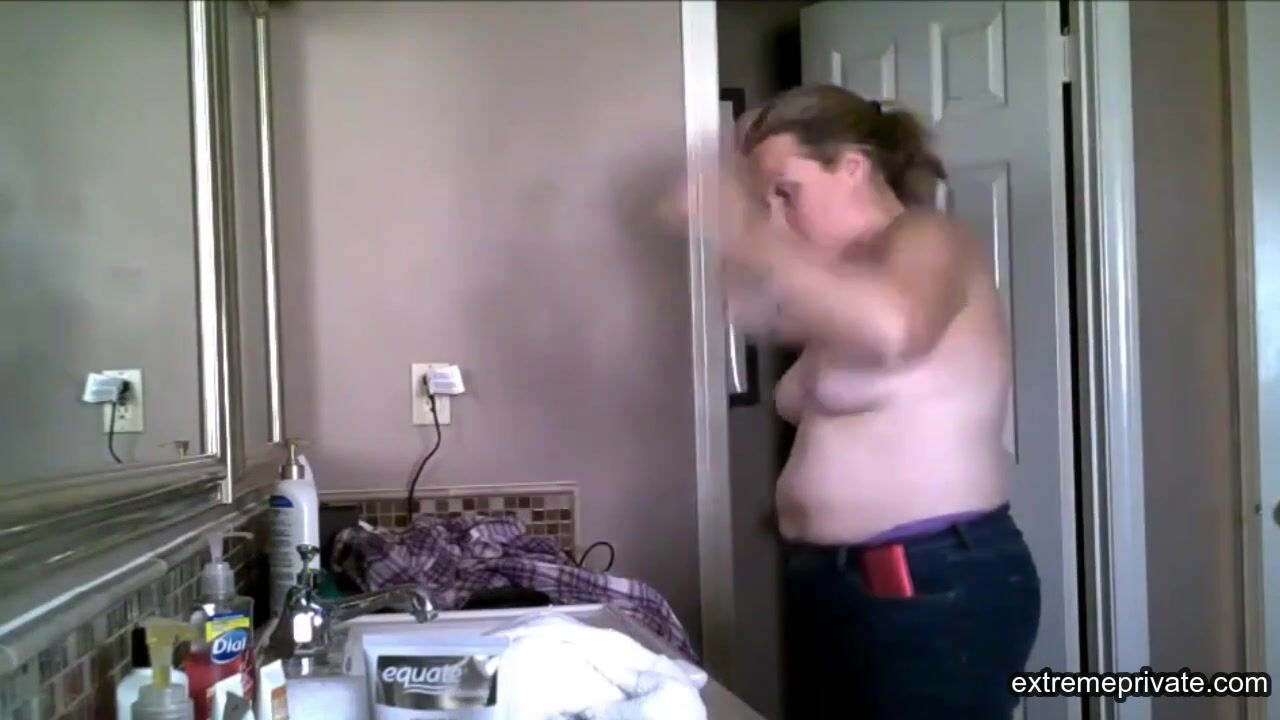 my stepmom is a naughty woman. She always gives me tips to do with my girlfriend. I look at her slightly saggy yet horny naked body in the bathroom and touch my cock.