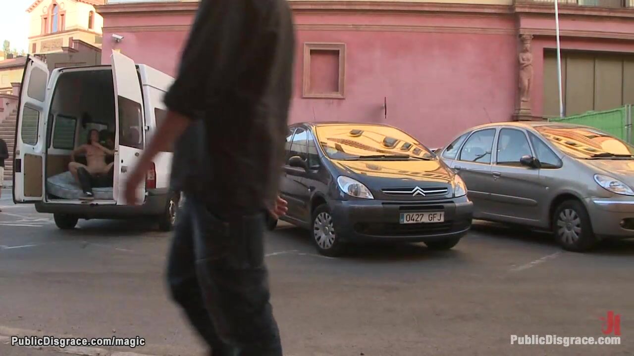 Euro babe fucked in the van in public