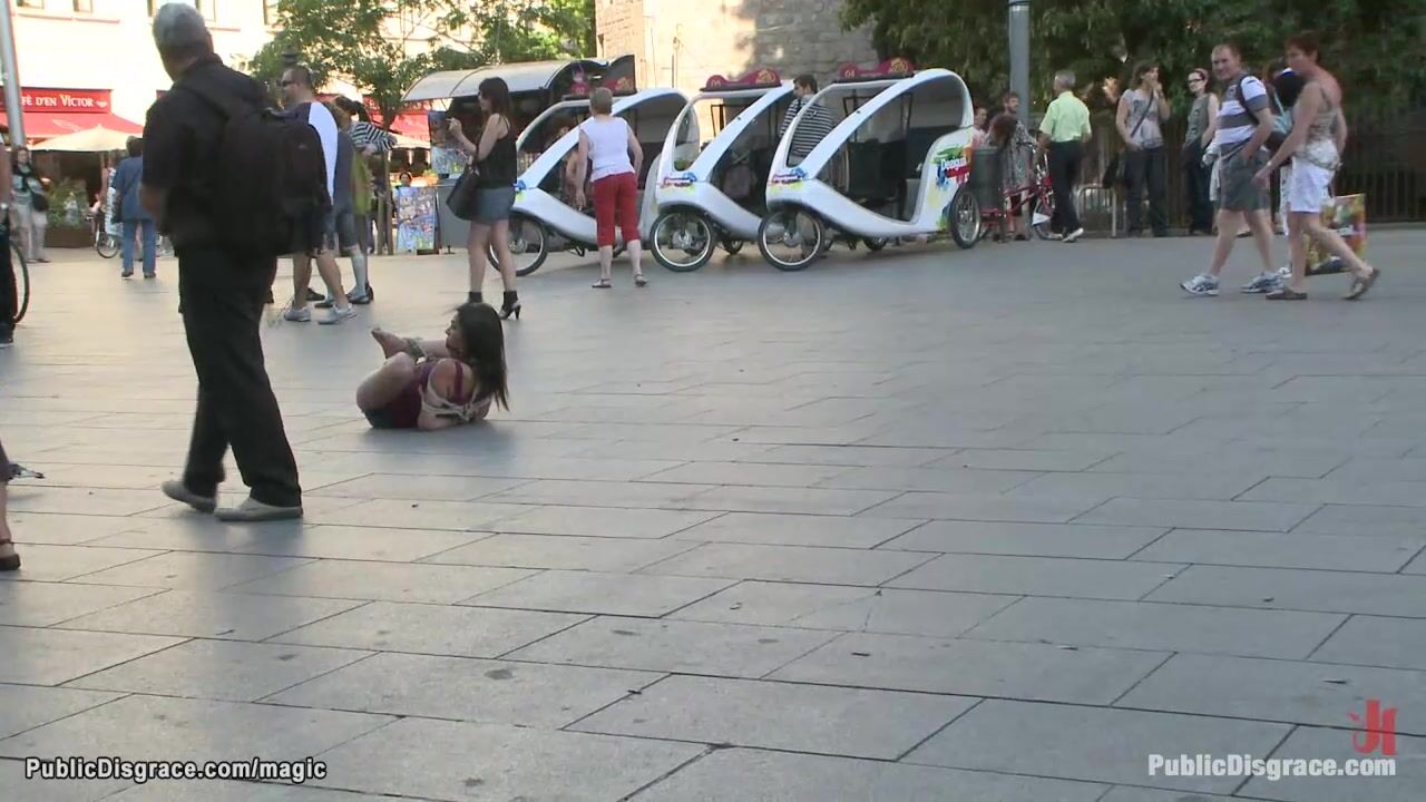 Gagged Spanish hottie Samia Duarte is bound on the public street by dominatrix Princess Donna Dolore then in the van fucked by big cock James Deen on old mattress