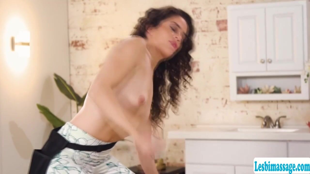 Curly haired masseuse lets her client get naked so they can start the massage session.After that,she gets naked too and she then starts licking the pussy of her client.Next is,her client lick her pussy too and they switch into scissor sex.