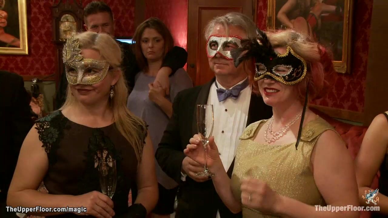 Three hot slaves Claire Robbins and Penny Barber and Danny Wylde are bound and pussies and asses fucked then hard whipped at bdsm orgy party in the Upper Floor