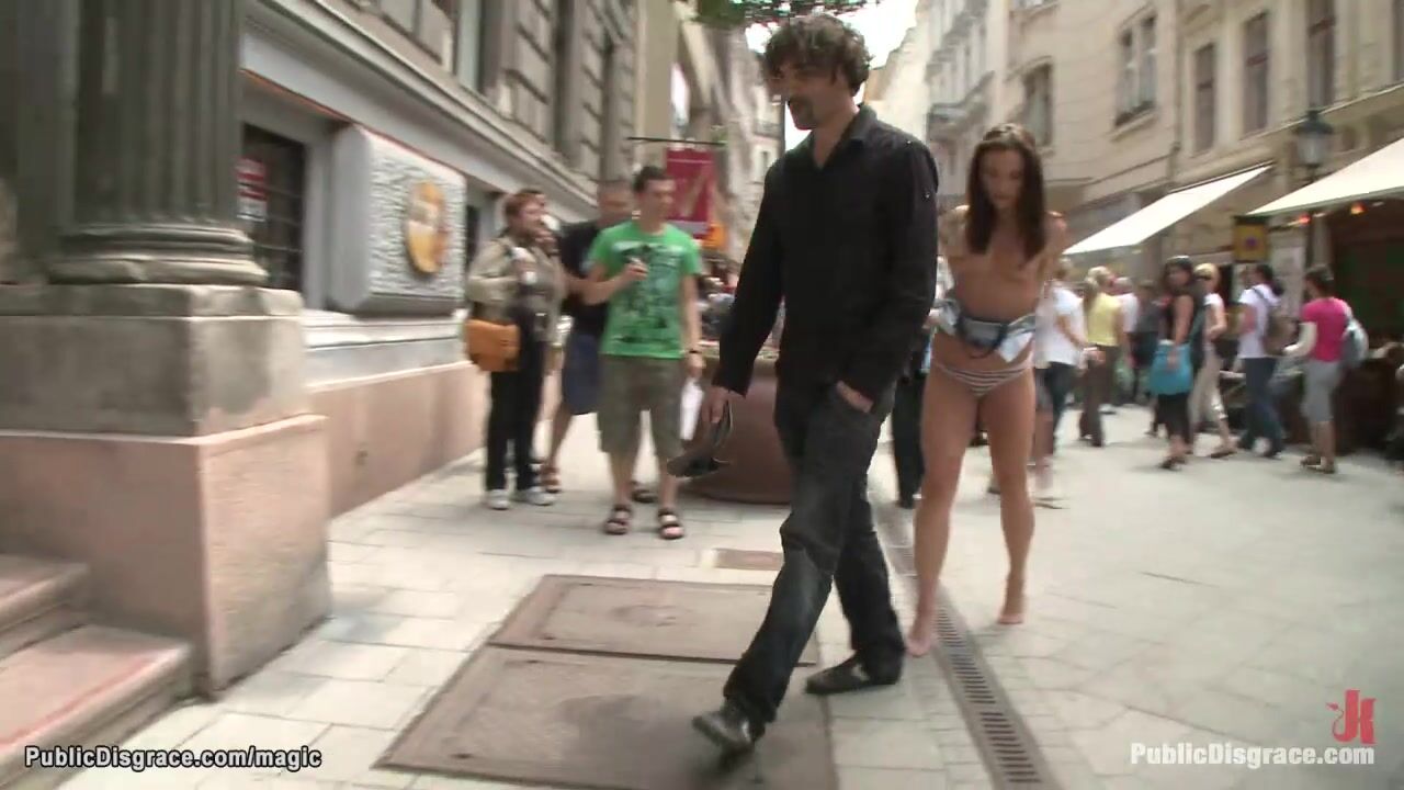 Master Zenza Raggi takes off shoes to bound Euro babe Niki Sweet and walks her through the city then fucks her with big cock in public city bus and other places