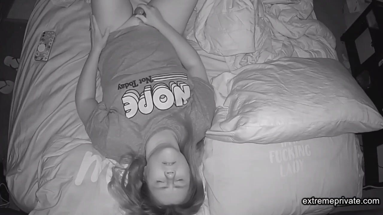 my stepsister(19) plays with her pussy in her bed, while in the next room I secretly watch and jerk off. She first watches some porn, then grabs her dildo, and cums wonderfully. I would love to cum on her tits.