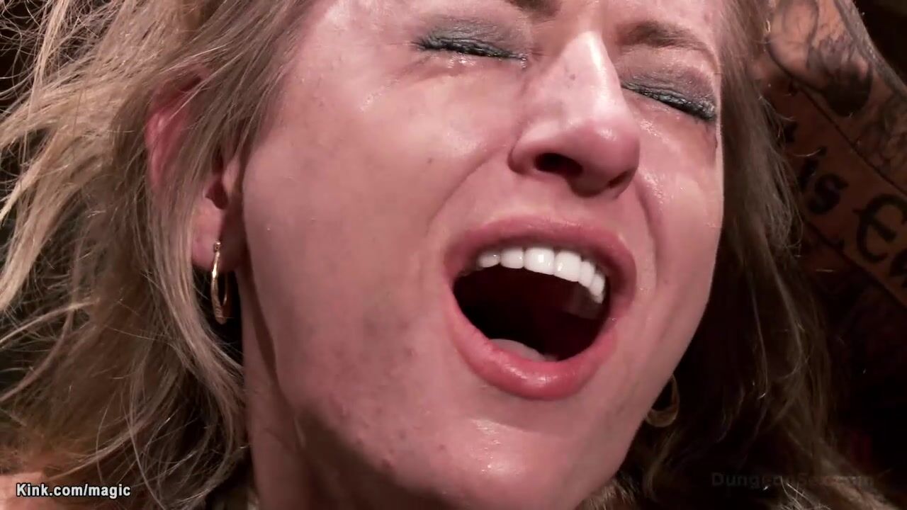 Slim hairy pussy blonde babe Natasha Starr in squating position gets pussy vibrated then rough pussy and anal fucked by big cock tattooed master Derrick Pierce