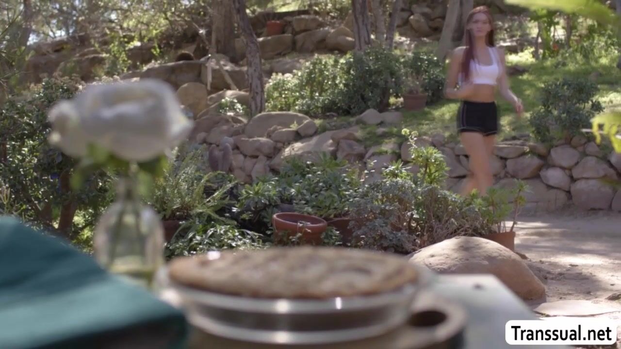 Busty mature is on the couch masturbating while her pie is getting fucked outside by TS neighbor.Instead of getting mad,she throats her hard shecock and she lets her fuck her pussy so deep and hard in the kitchen.