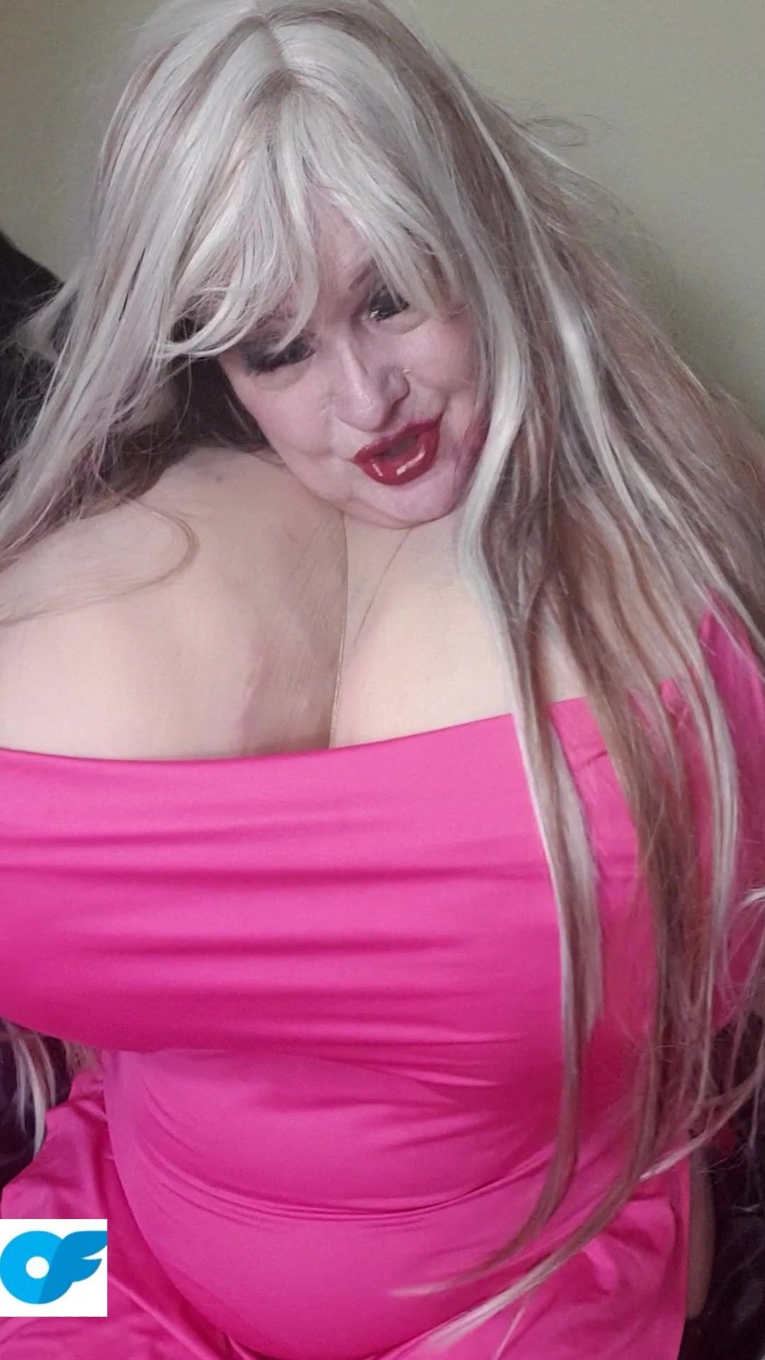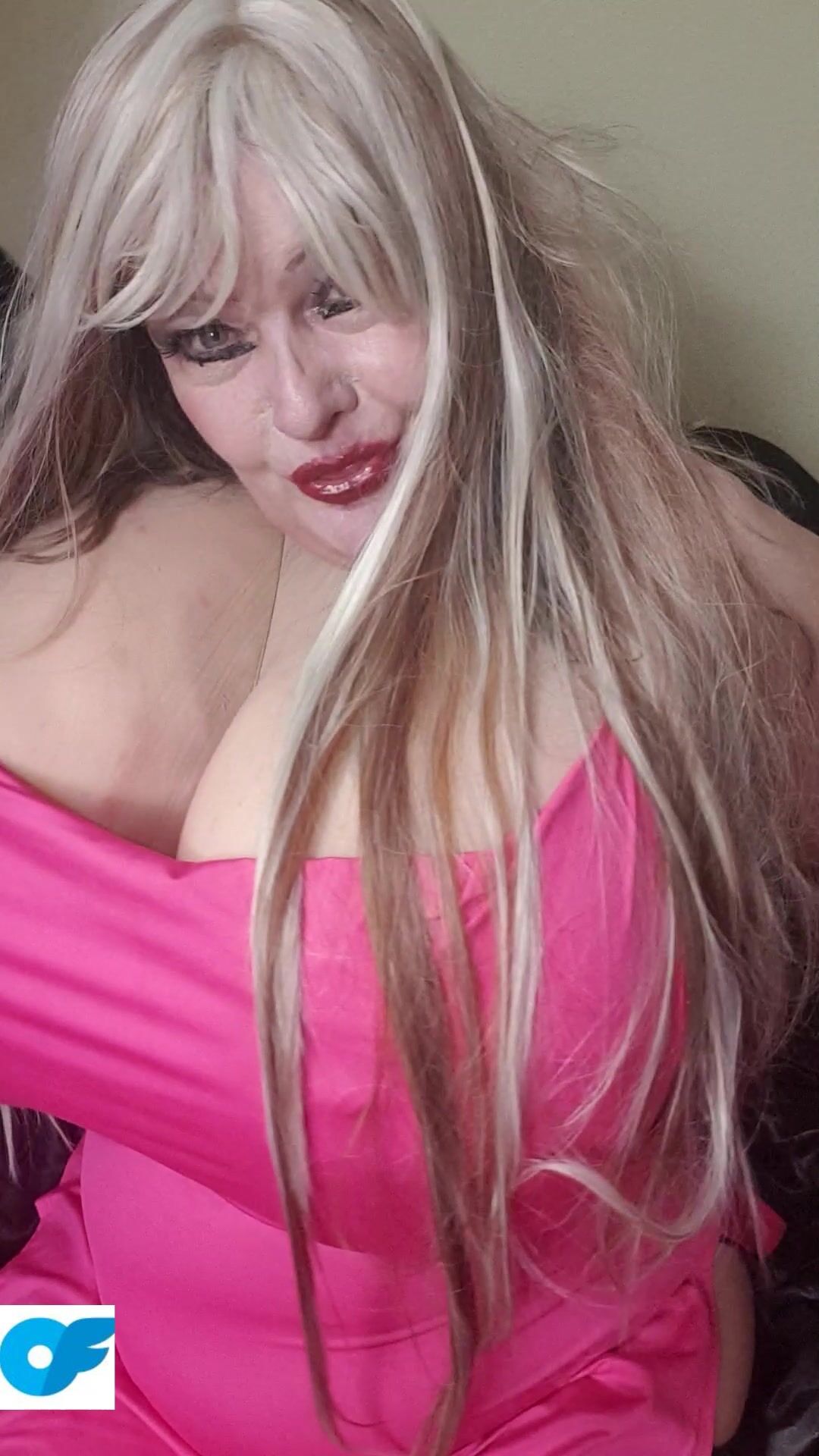 Susi is wearinga pink dress. She is taking dress off showing her big boobs. She is licking bbc toy. She shows her muffin pussy and then she puts bbc toy between tits and in her pussy moaning and masturbating You hear her moaning and see her legs spreading and pushing big pussy