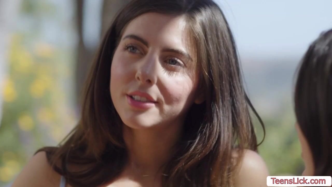 Teen brunette and her friend are sitting on the bench and talks about sex.After that,they get horny and go inside the house and start kissing each other passionately.Next is,they lick each others pussy and fucks it using strap on.