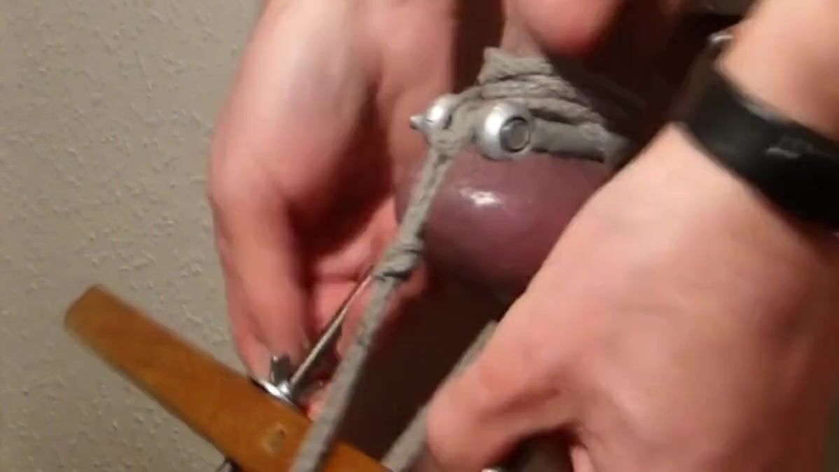 My balls tied off & stretched in a homemade device