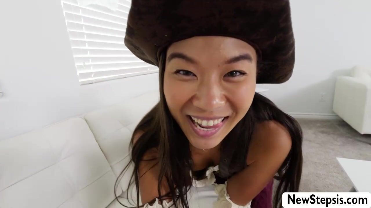 Horny petite asian teen Kimmy Kim wants to party on halloween but she is not allowed so her handsome stepbro Jay Rock offers her some fun but she has to lets him watch her masturbate. The small tits babe grabs his big cock to deeepthroat blowjob and rides it.