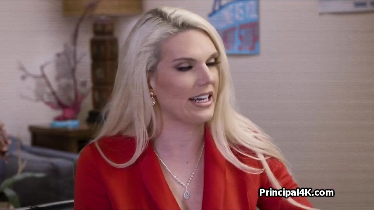 This busty house wife is called into the principals office. Her small one is in deep trouble but she can do a lot of things to improve her situation!