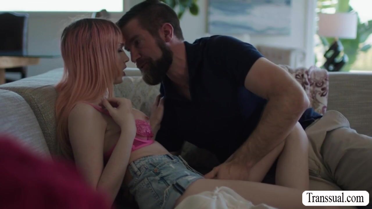 Stepdad comforts his Trans Stepdaughter because she looks so tired.They start kissing each other on the couch and he then licks her ass to makes it wet.In return,his TS stepdaughter throat his dick and lets him fuck her wet ass so deep and hard.