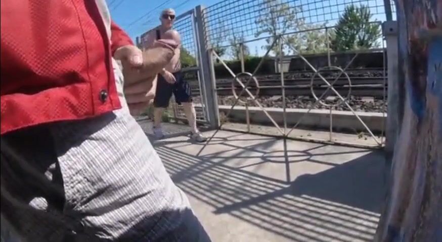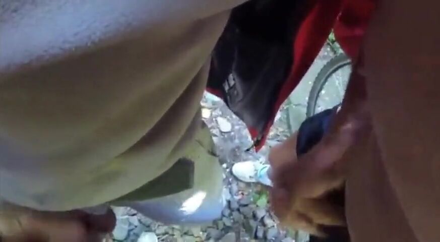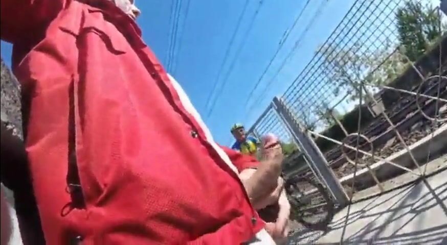 Daddy on bike trail meets couple