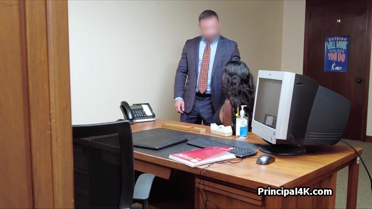 Lovely big tit ebony house wife Naomi ends up in the principals office for a little interview. But her mouth ends up working on principals hard dick!
