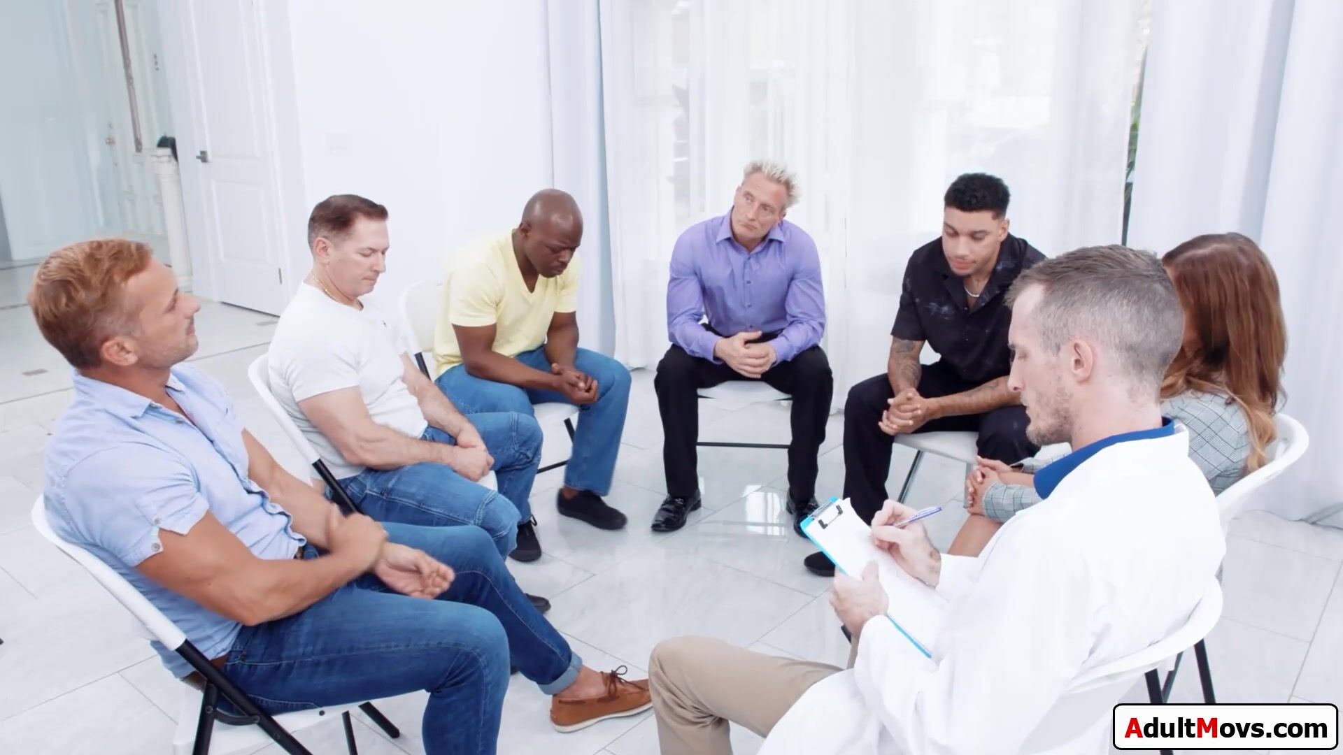Busty shrink Jesse Pony gives handson counseling and sucks and rides a client ifo the rest.The big tits slutty redhead is deepthroat facefucked by the group of horny dudes.The ginger babe gets double pussy fucked and dped while giving blowjobs