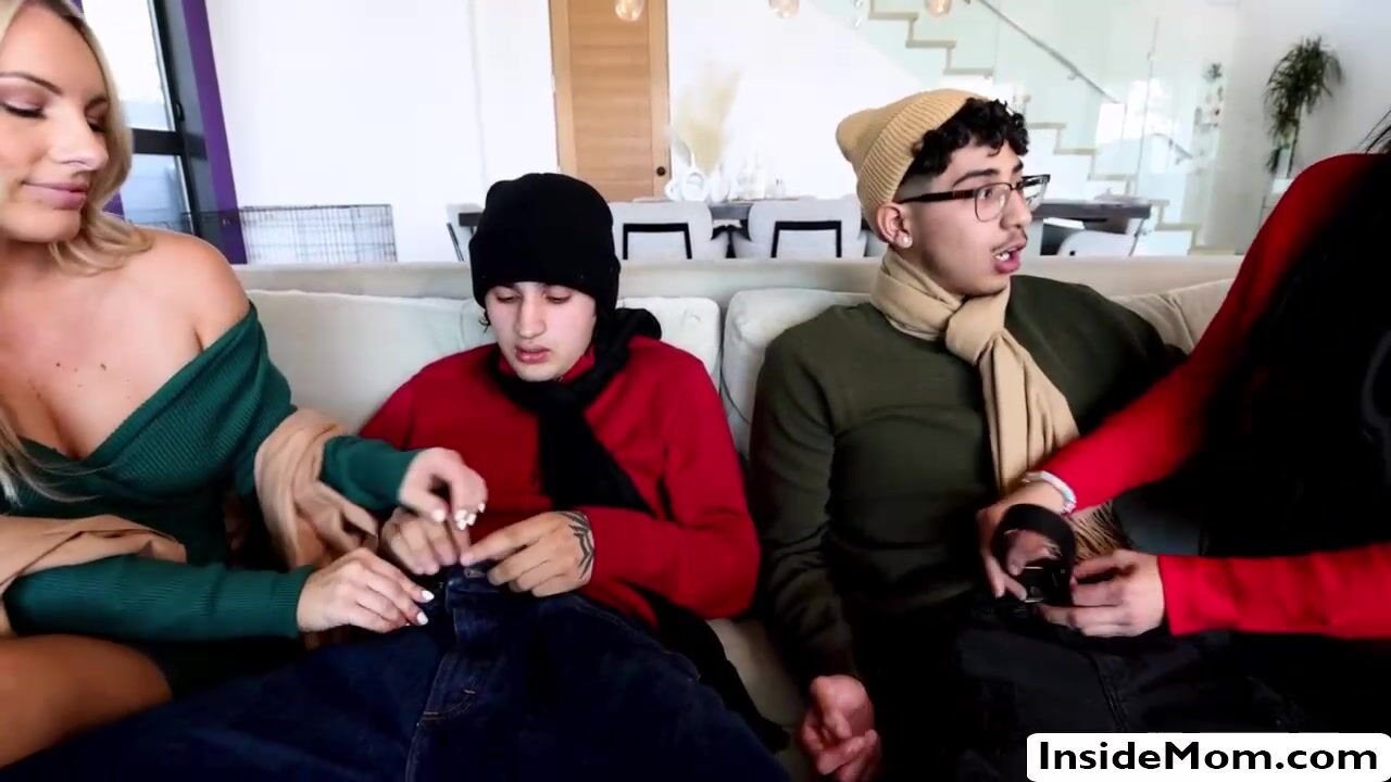 Milf stepmoms Bunny Madison and Mona Azar are concerned about the well being of their stepsons, Diego and Ellias. The two babes comfort them with heated foursome sex in the couch together they blowjob their bigcocks before getting their pussies fucked.