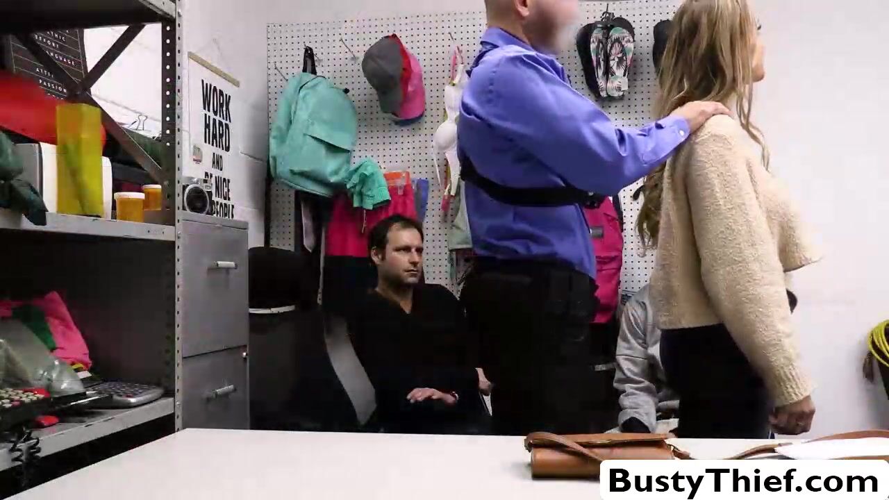 Big tits blonde babe Kenzie Love has been framed for theft and was brought to the office of the security officer for interrogation. But she ends up sucking his bigcock and getting fucked doggystyle hardcore on the desk to resist arrest and enjoy instead.