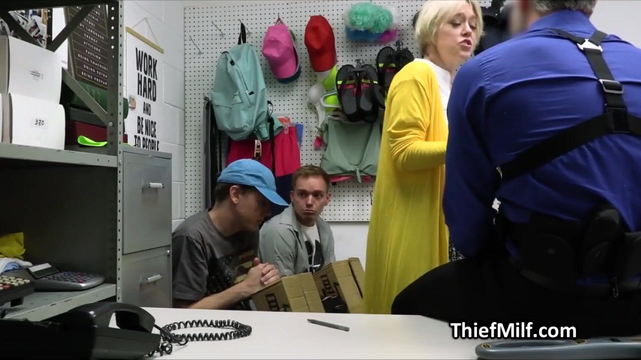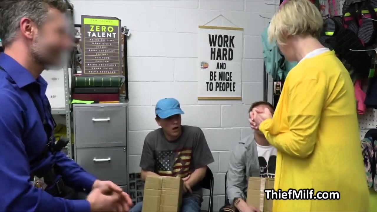 The guys have tried to steal some skateboards and mommy is here to help them out. She is going to suck the officers dick to make it all good!