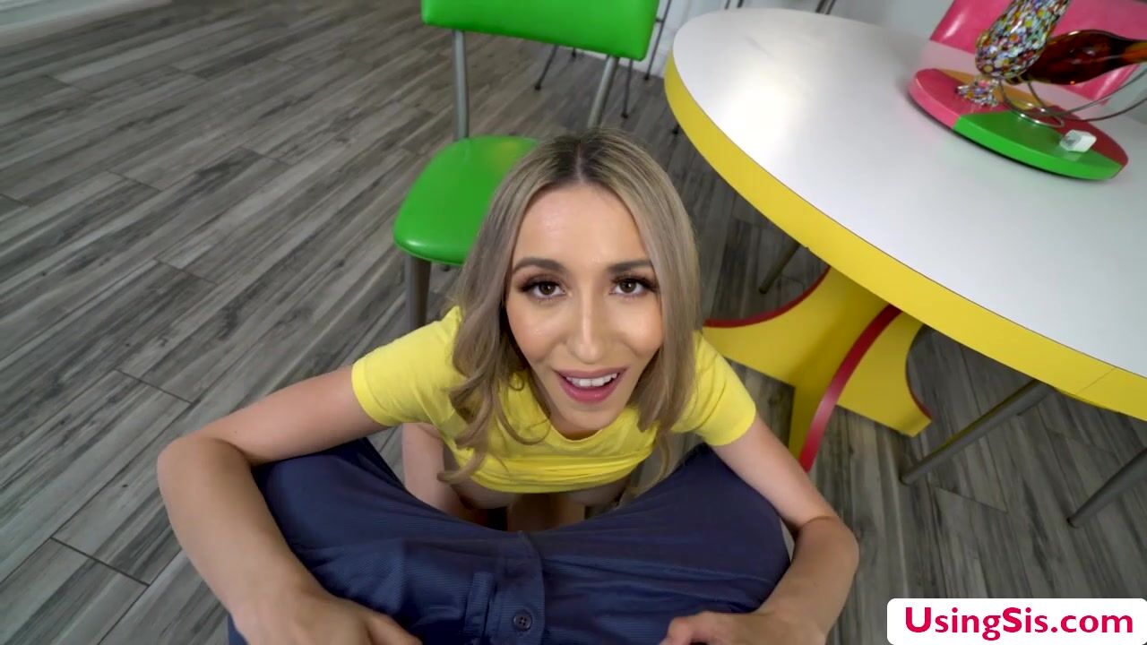 Teen blonde is so mad because her boyfriend get laid last night and shes doing it by herself.She asks some help to her stepbro and she lets him warmed up her pussy by fingering it.In return,she throats his cock and lets him fuck her pussy so hard.
