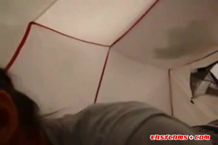 Asian cutie sucks cock in a tent