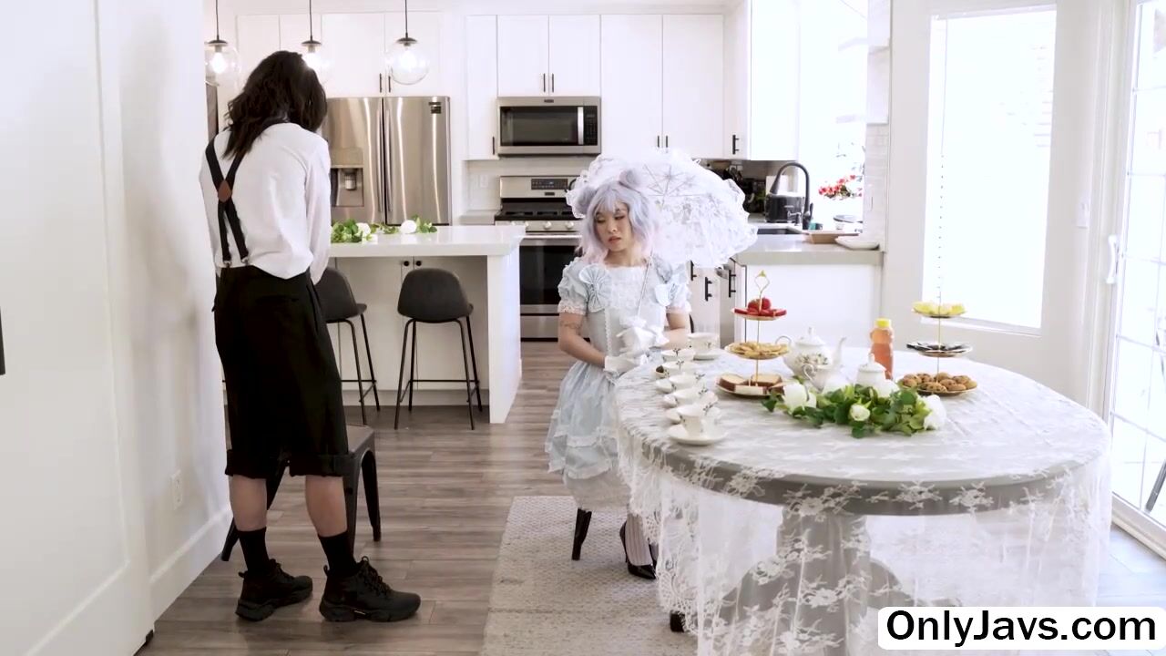 In the kitchen, petite stunning asian teen Kimmy Kim had a dinner with hunk guy David Lee where he eagerly taste the treat between her legs with a luscious pussy licking. The horny babe then grabs his bigcock to blowjob before she enjoys a hardcore pussy fuck.
