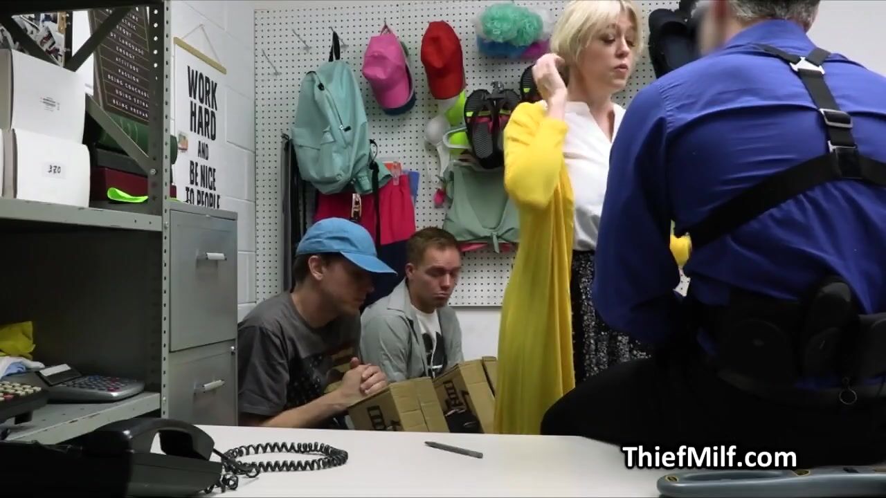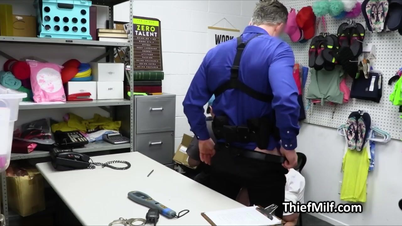 The two guys got busted for stealing some stuff but Dee is here to save them. The only solution would be for her to suck dick and get fucked in front of them!