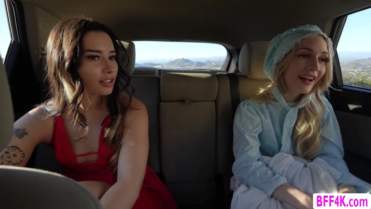 Teen blonde is waiting in the road for a free ride and a group of sweet hipster hippies saw her.They bring her into their place and then they start licking her pussy passionately.After that,they let one guy fuck their wet pussies one by one.