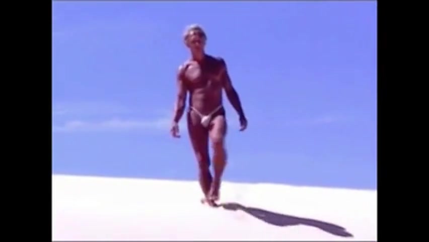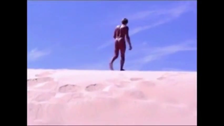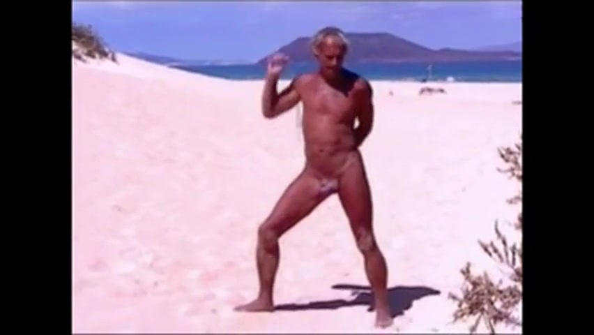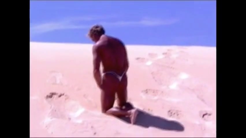 Tanned guy on beach in tiny string thong (temporarily!)