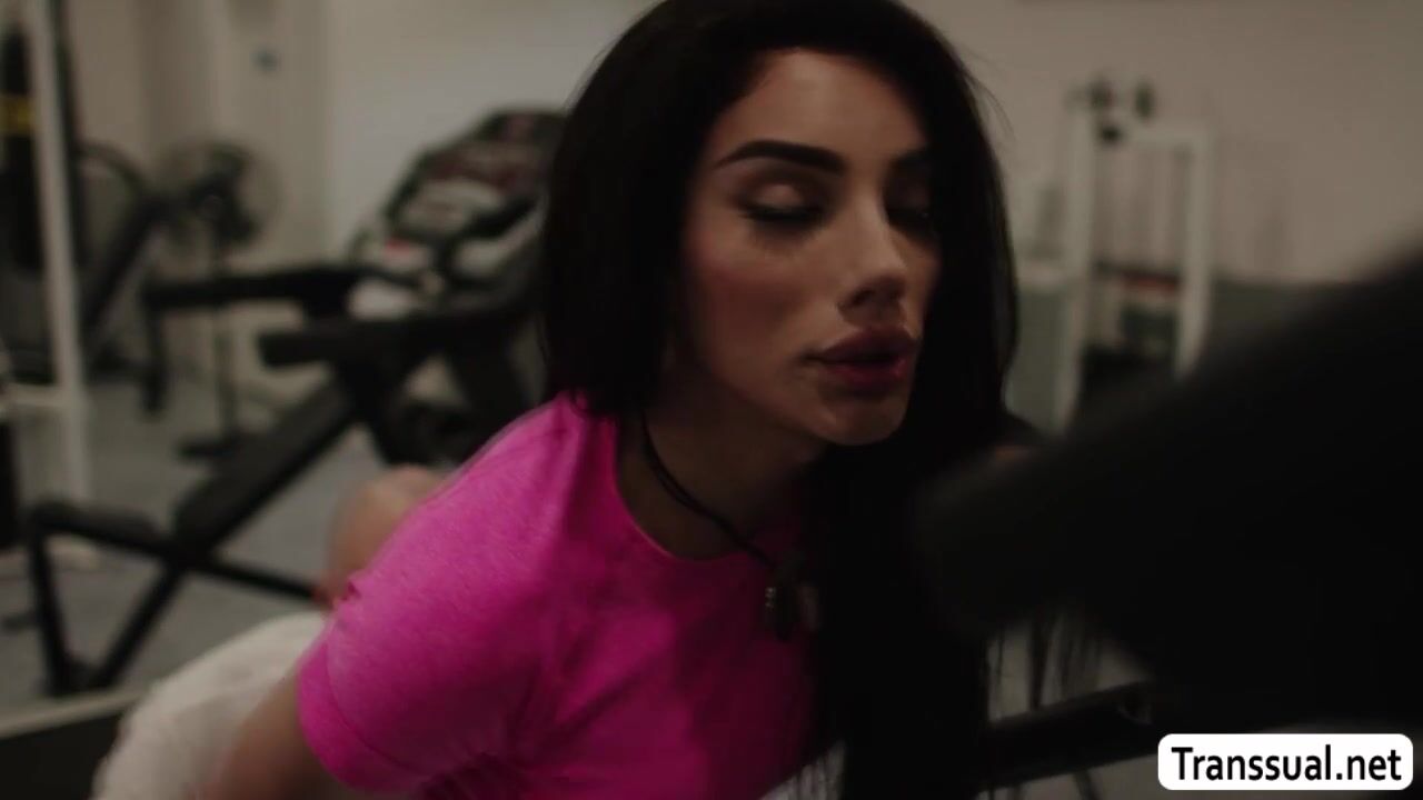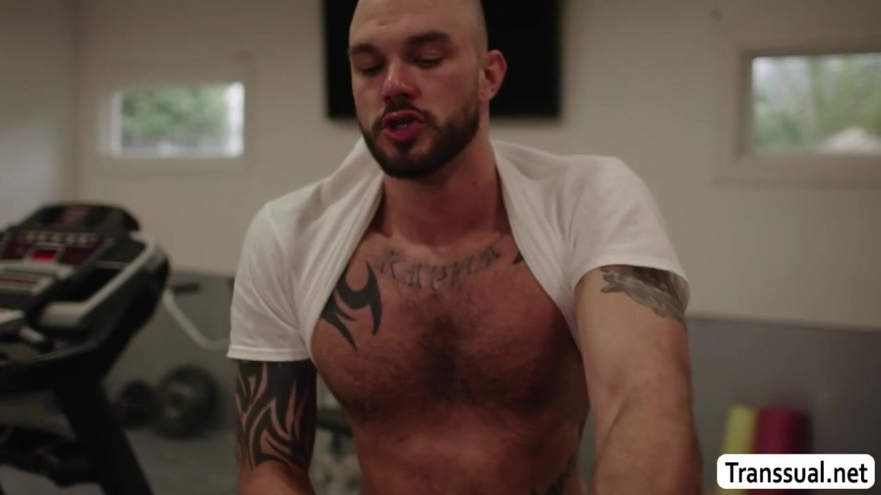 Pervert guy cant stop looking at his Shemale gym buddys big ass.He goes to her and he rips off her leggings and start licking her ass.After that,she pulls out his big cock and lets her suck it before he starts fucking her ass.