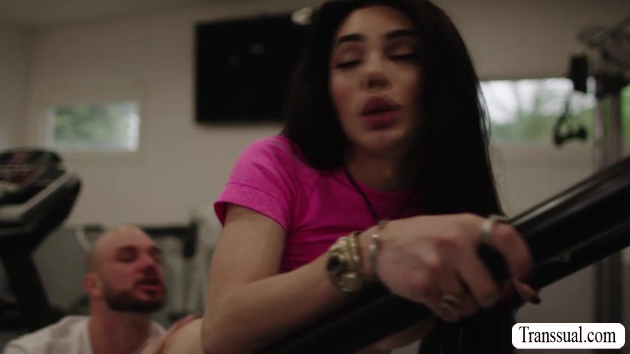 Horny guy cant stop looking at his Shemale gym buddys big ass.He goes to her and he rips off her leggings and start licking her ass.After that,she pulls out his big cock and lets her suck it before he starts fucking her ass.